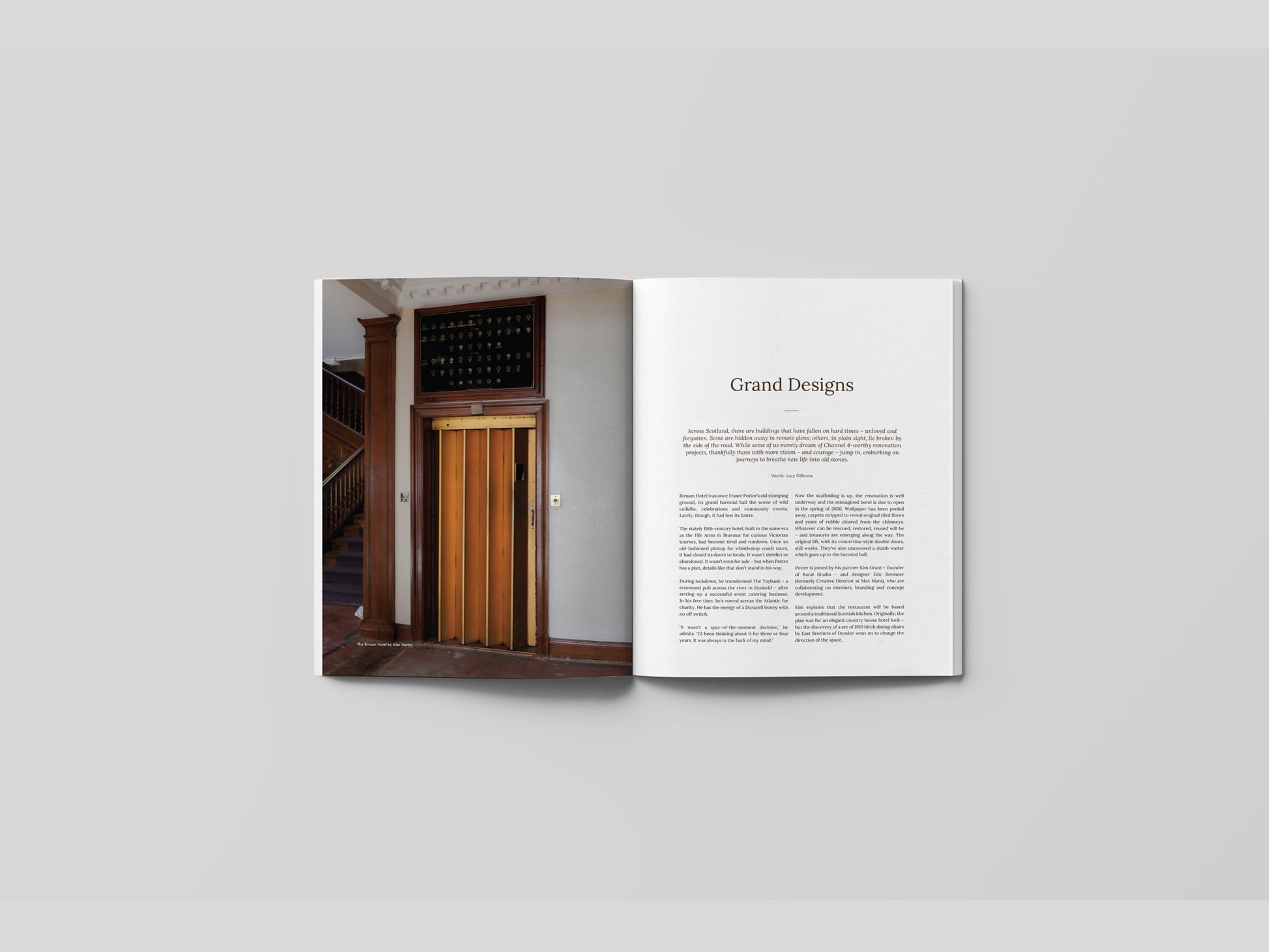 The publication is 160 pages, perfect bound, and printed in full colour on FSC-approved uncoated paper in Scotland. It measures 200 x 255mm. We are printing the magazine with J.Thomson Colour Printers LTD, Glasgow.