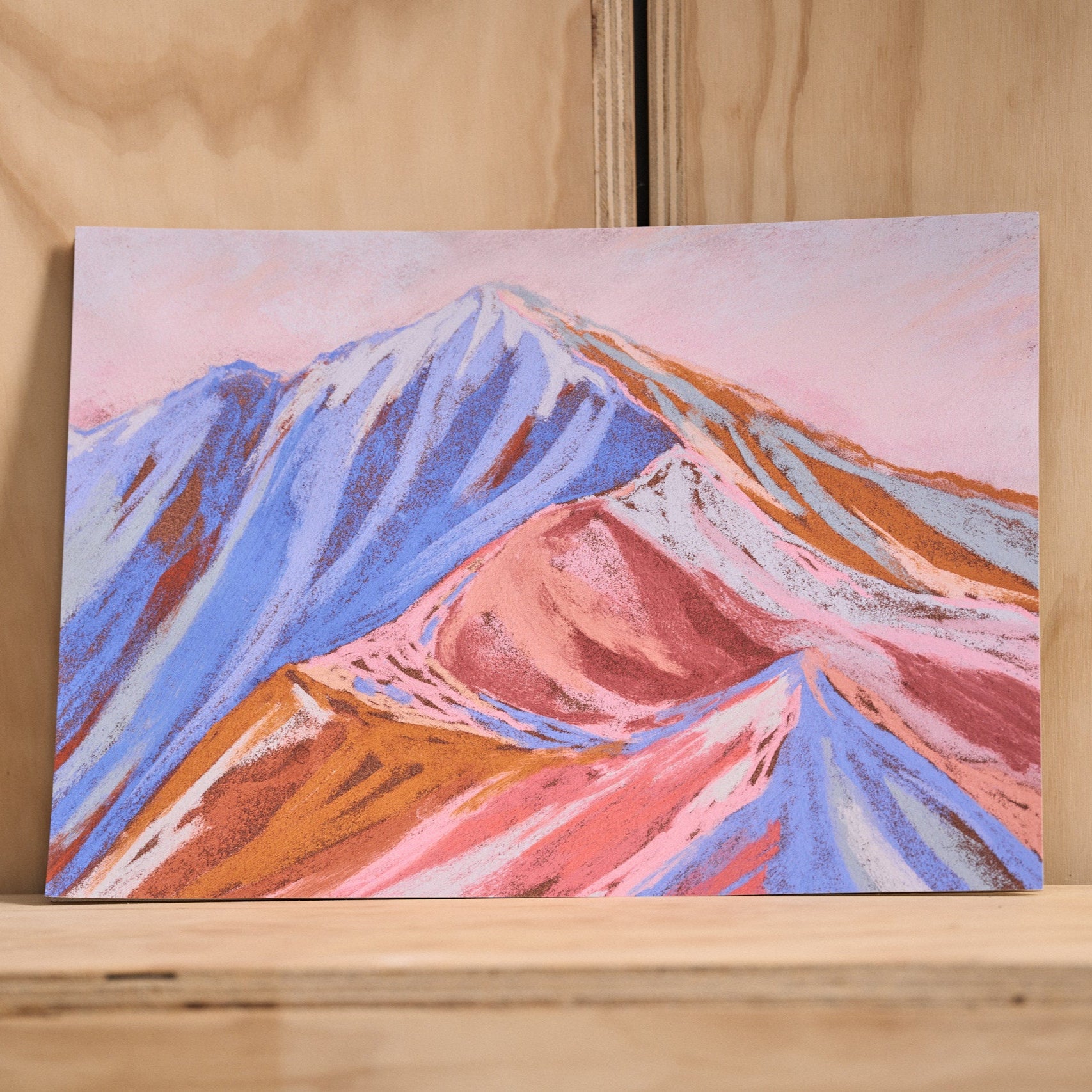 Unknown places, somewhere in Scotland created in a palette of blues, pinks and earth tones. Signed giclee, printed on archival quality Somerset 225gsm radiant white, which is constructed with 100% cotton, acid free material and printed using pigment ink.