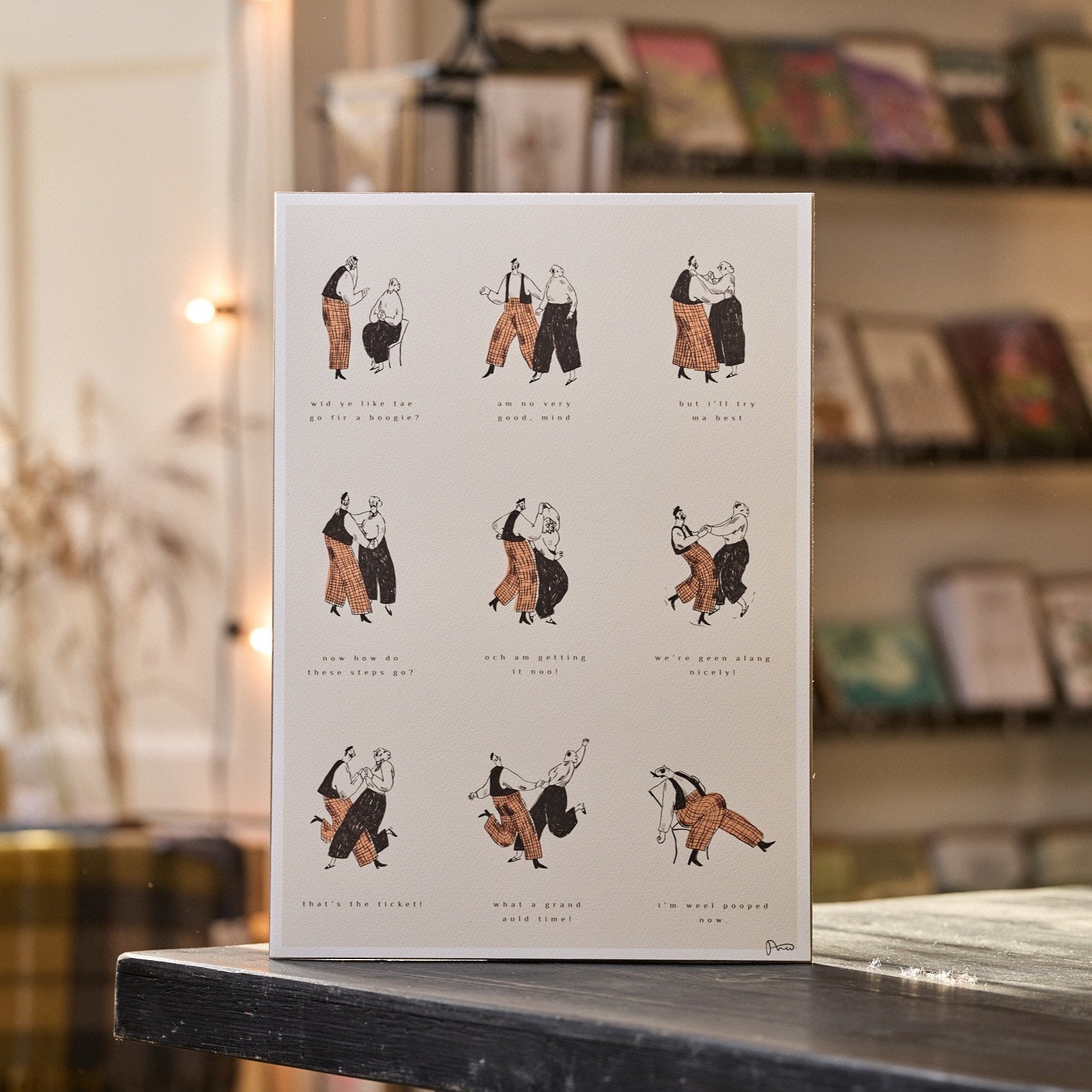 Add a touch of Scottish charm and humour to your space with this fun print by Scottish illustrator Phoebe Roze. Inspired by Scotland’s vibrant culture and love for a good ceilidh, this playful design captures the spirit of fun and spontaneity.