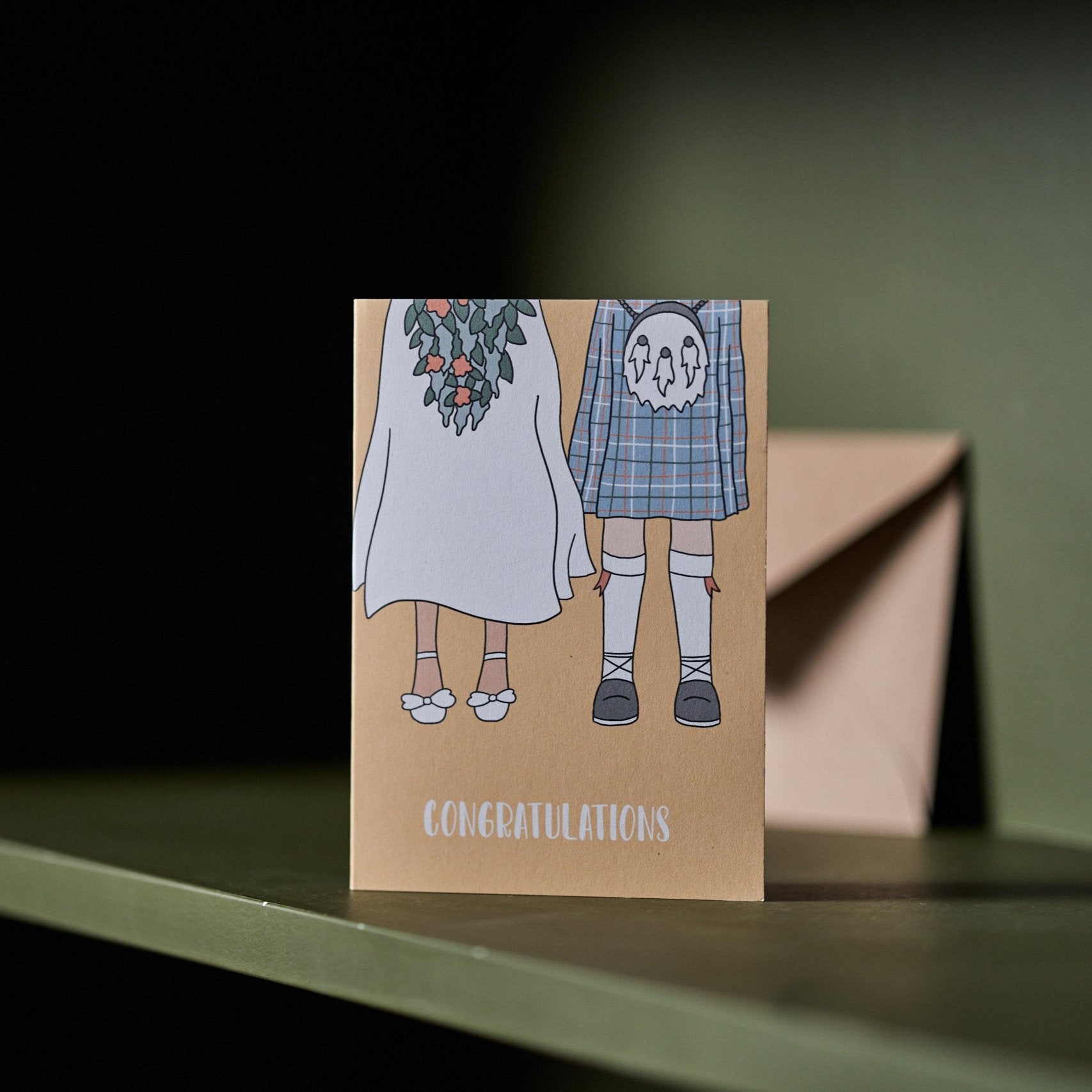 This A6 card is blank inside, providing ample space for your own heartfelt message. Proudly made and designed in Scotland, it’s a delightful way to send your best wishes to the newlyweds.